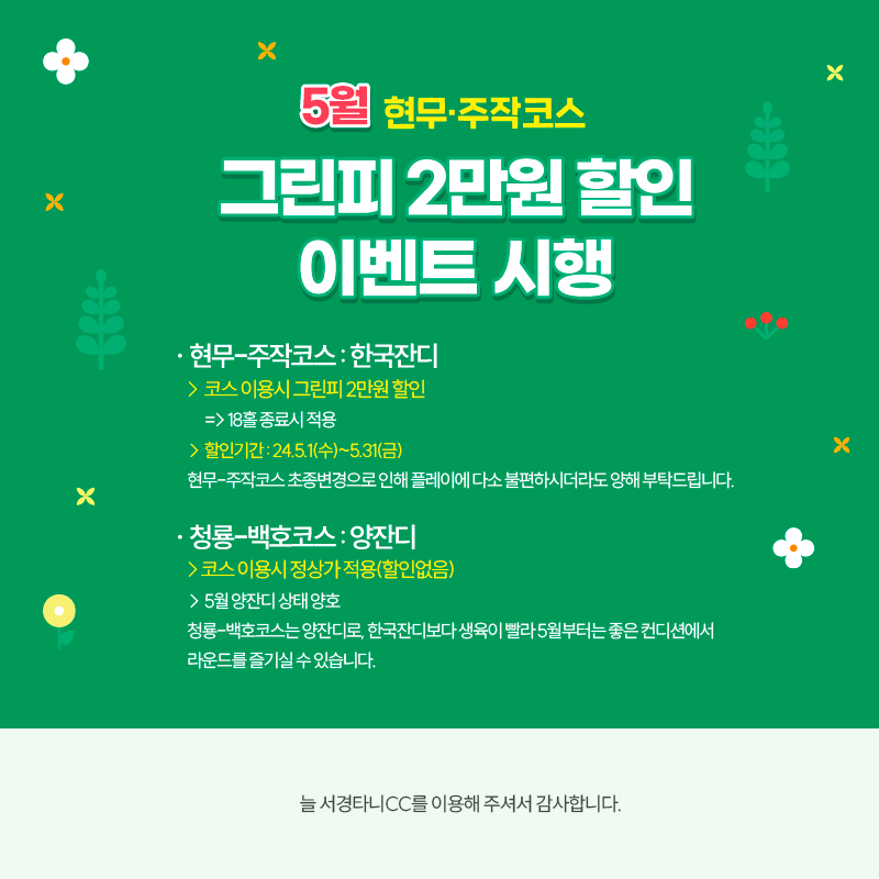 5월 현무-주작코스 그린피 2만원 할인 이벤트 시행