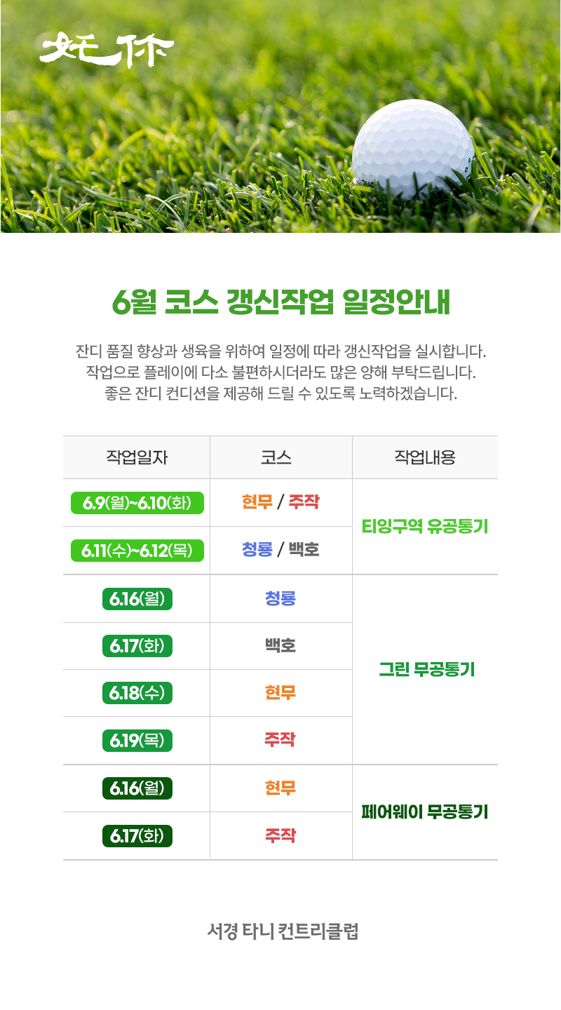 6월 코스 갱신작업 일정안내