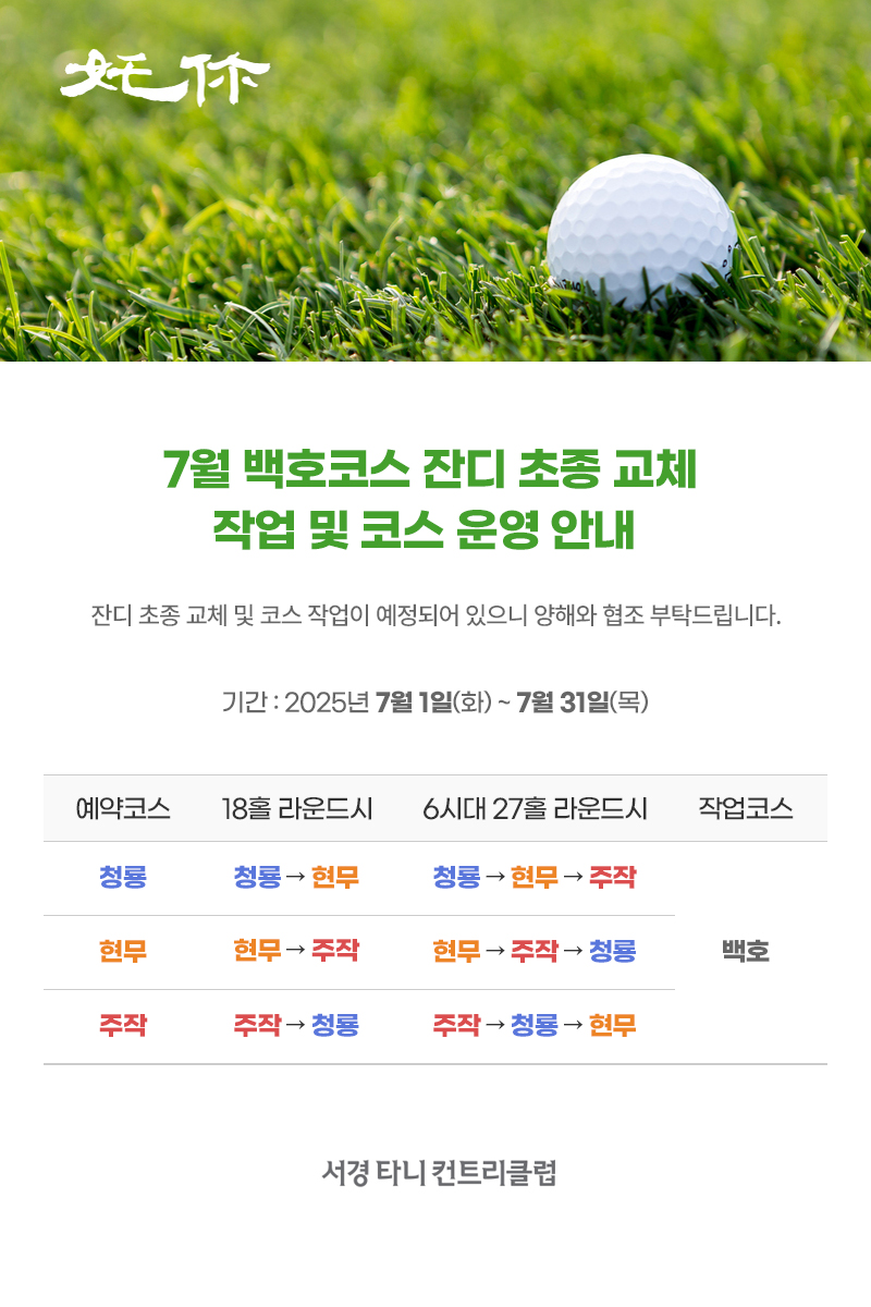 7월 백호코스 잔디 초종 교체작업 및 코스 운영 안내