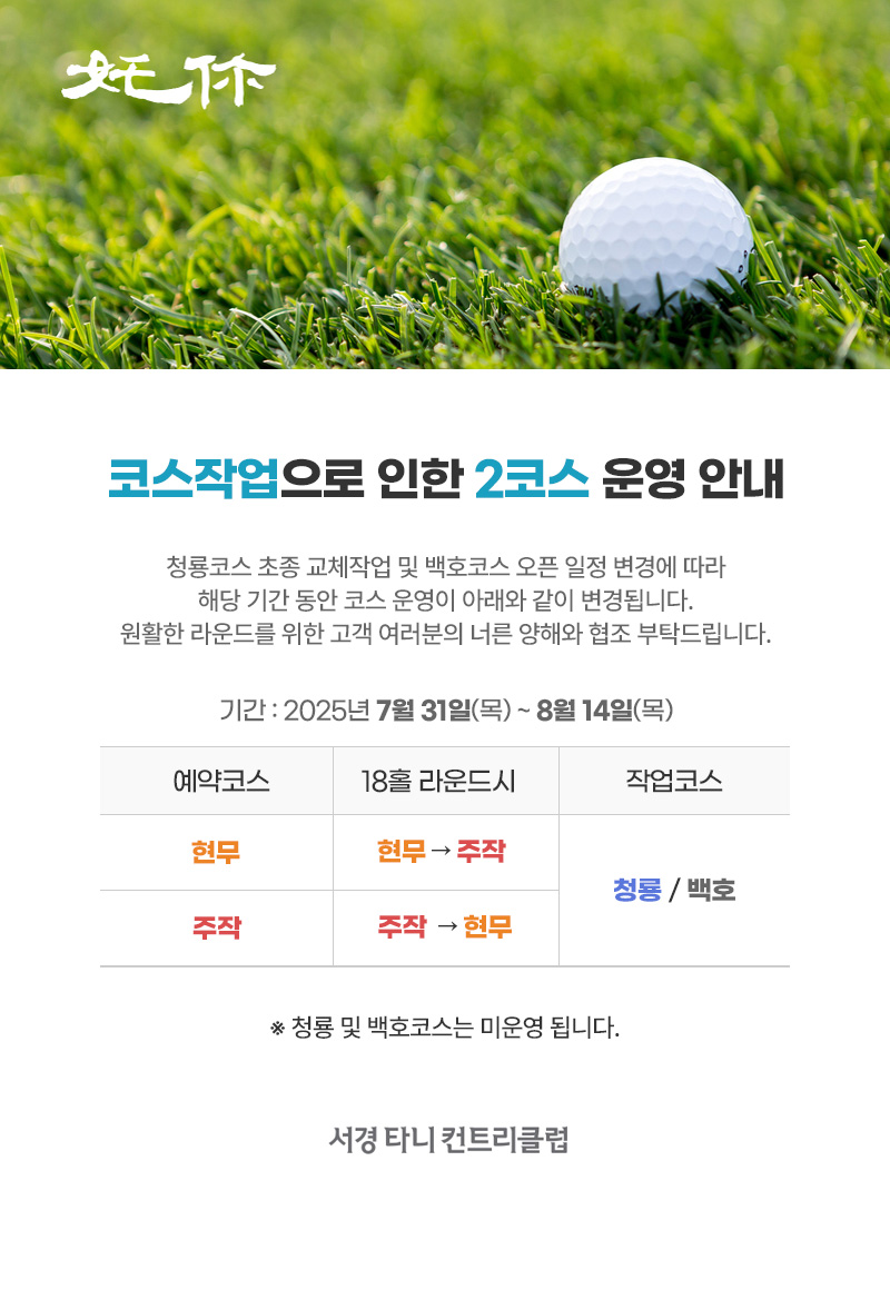 [변경]7월~8월 잔디 초종 교체 작업 및 코스 운영 안내