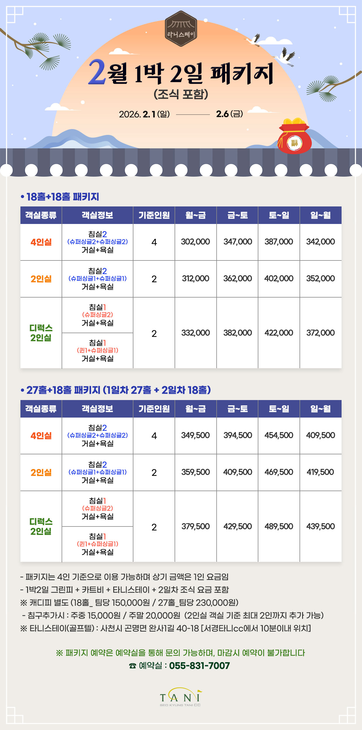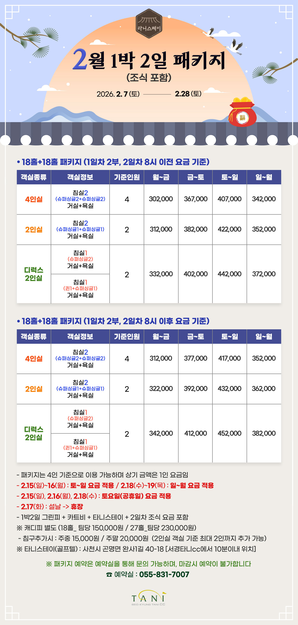 2월 1박 2일 패키지 안내