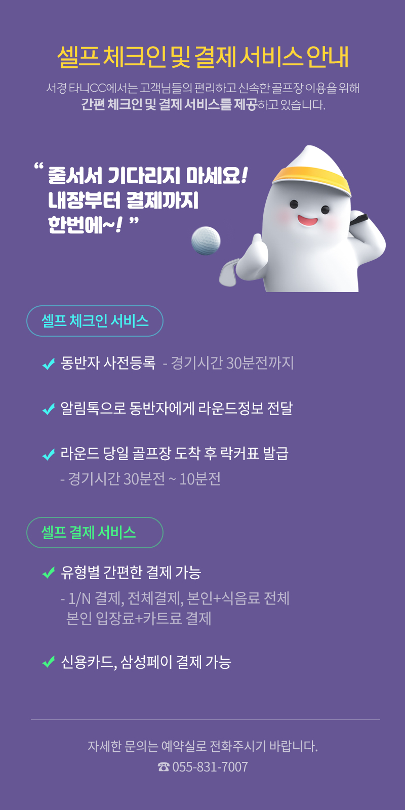 셀프 체크인 및 결제 서비스 안내