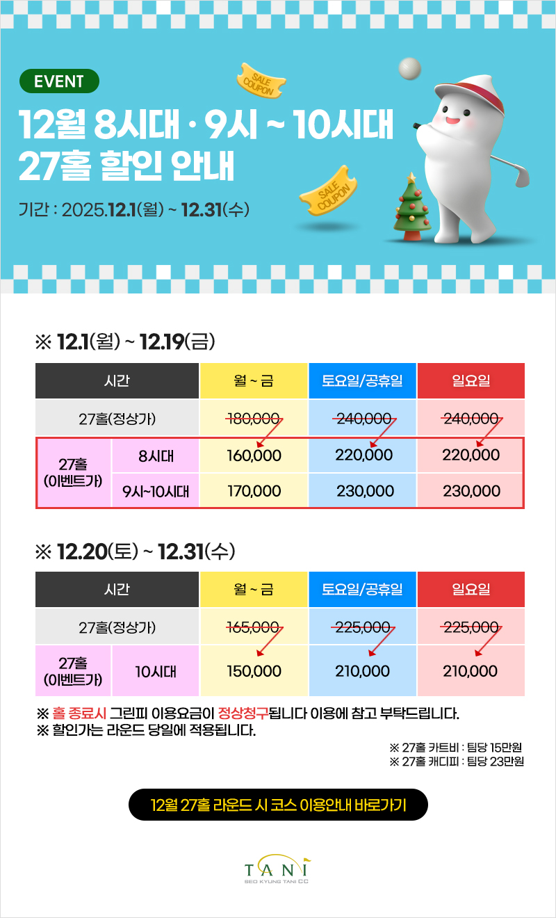 12월 8시대 · 9시~10시대 27홀 할인 안내