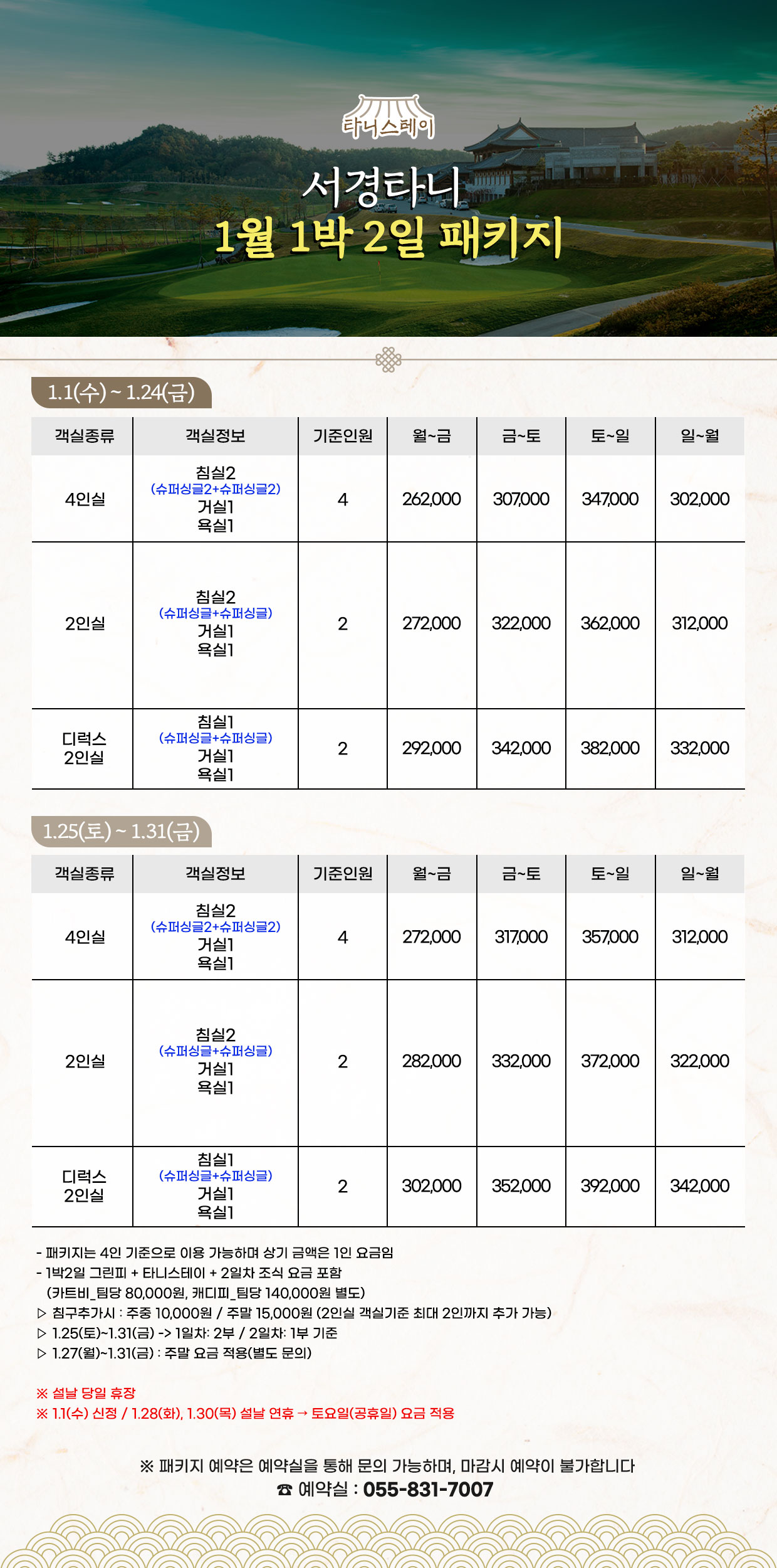 1월 1박2일 패키지 안내